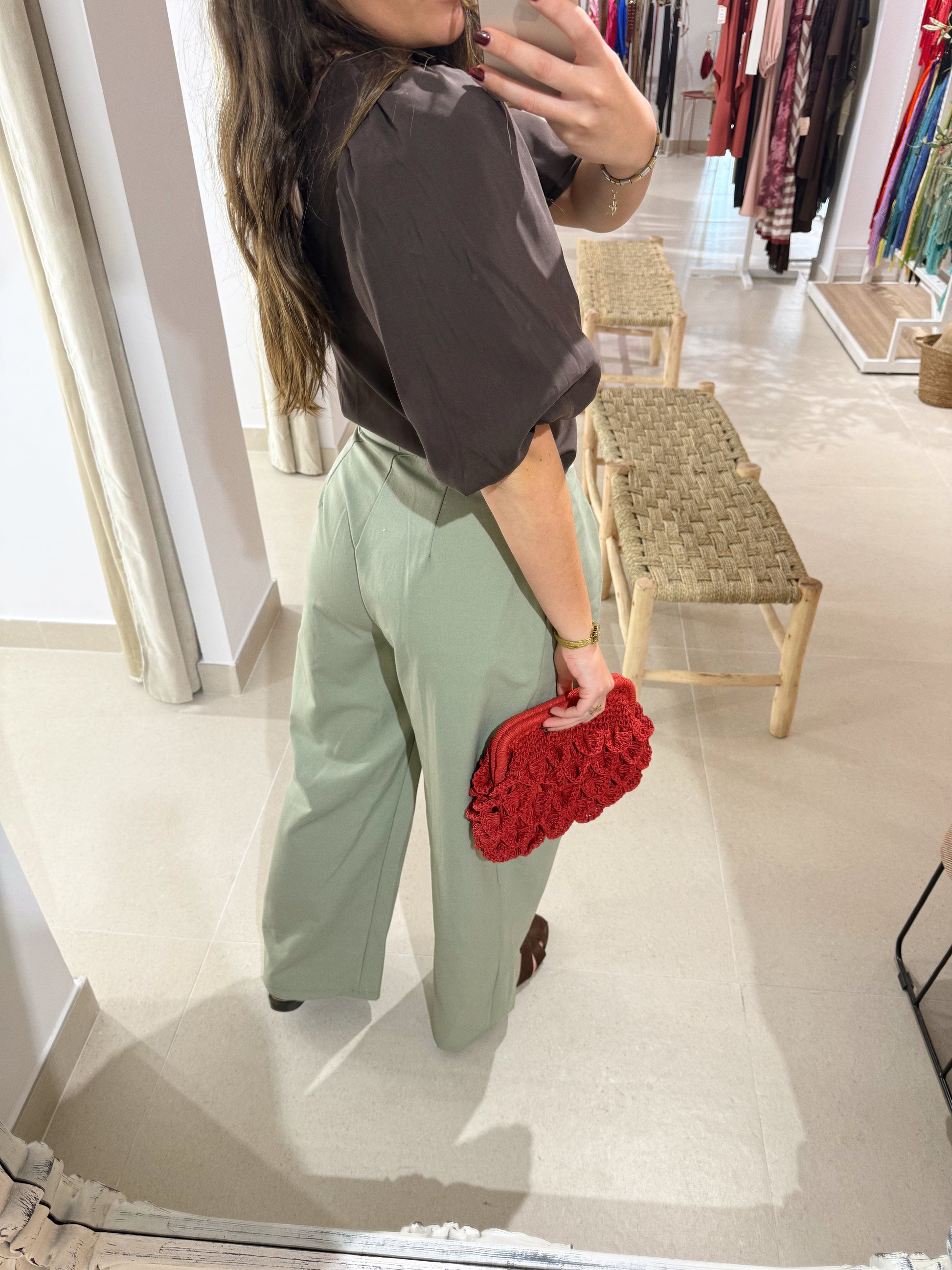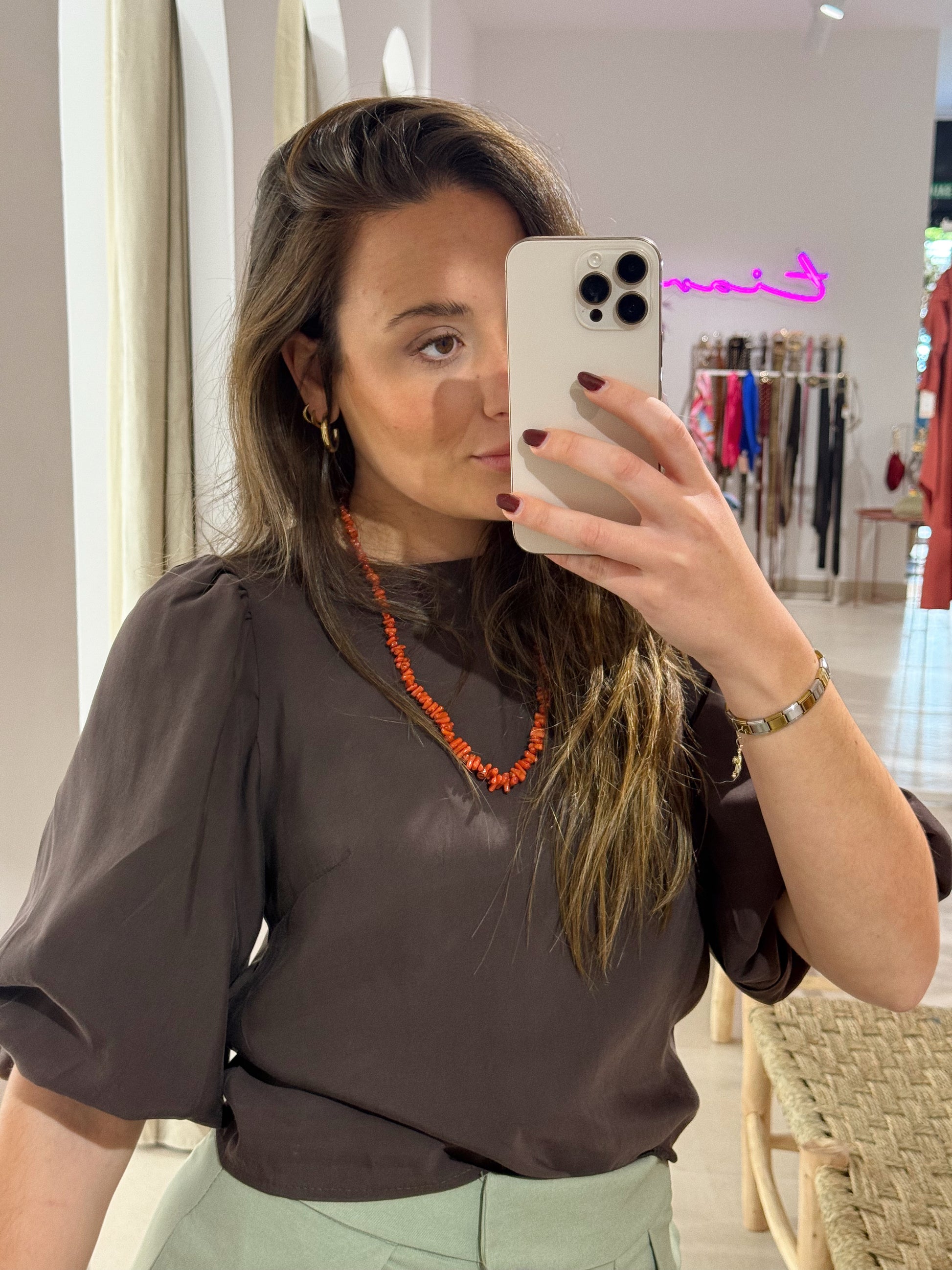 BLUSA MEDIA MANGA ABULLONADA MARRÓN